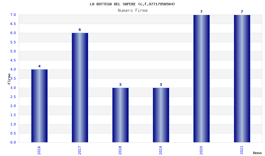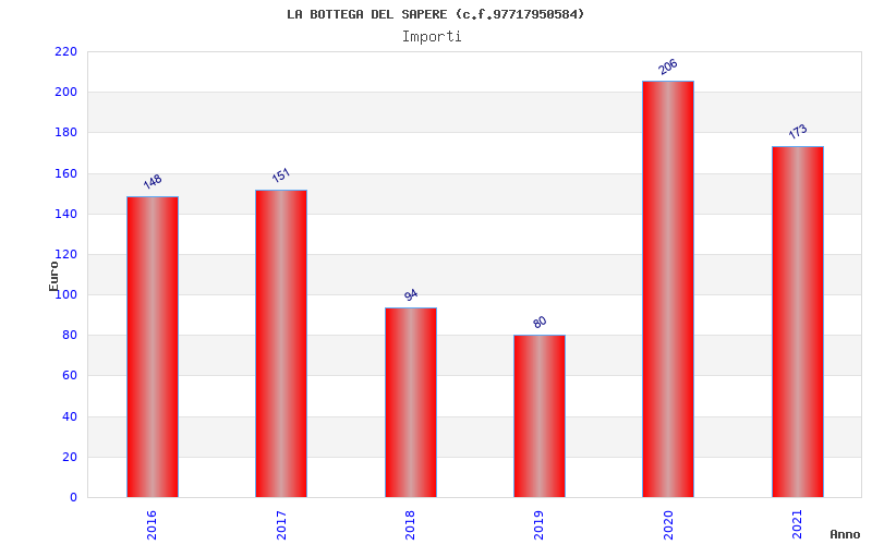 | Anno | Firme | Importi | Media | Naz. | Reg. | Prov. | Comu. |