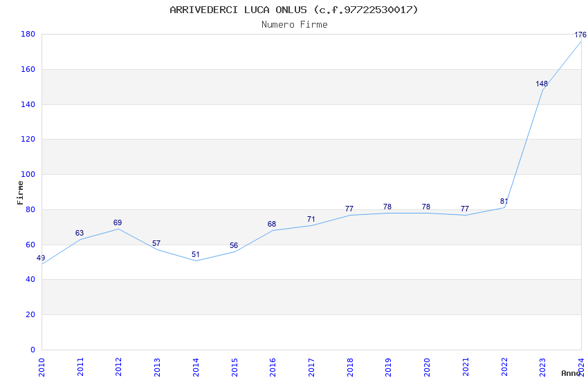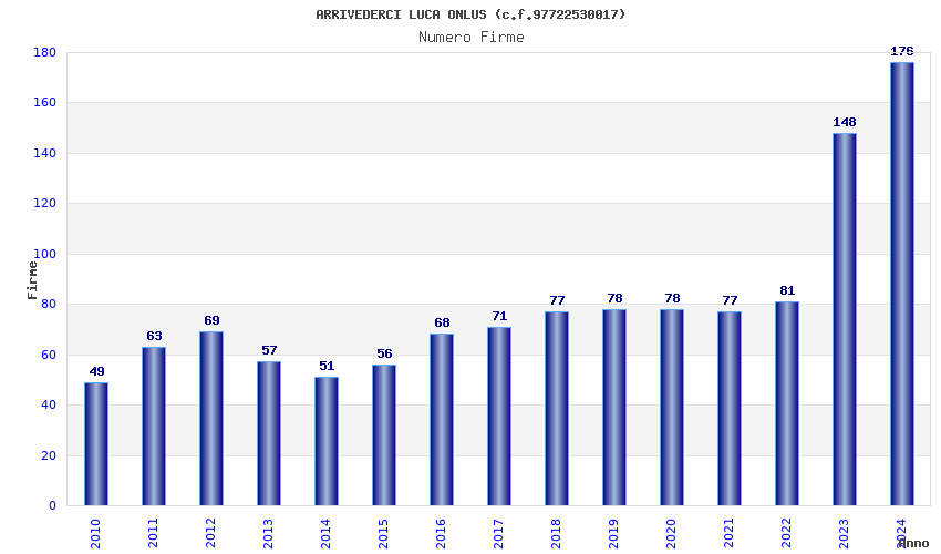 | Anno | Firme | Importi | Media | Naz. | Reg. | Prov. | Comu. |
