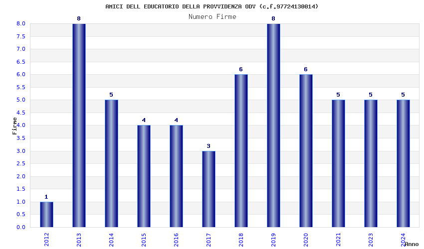 | Anno | Firme | Importi | Media | Naz. | Reg. | Prov. | Comu. |