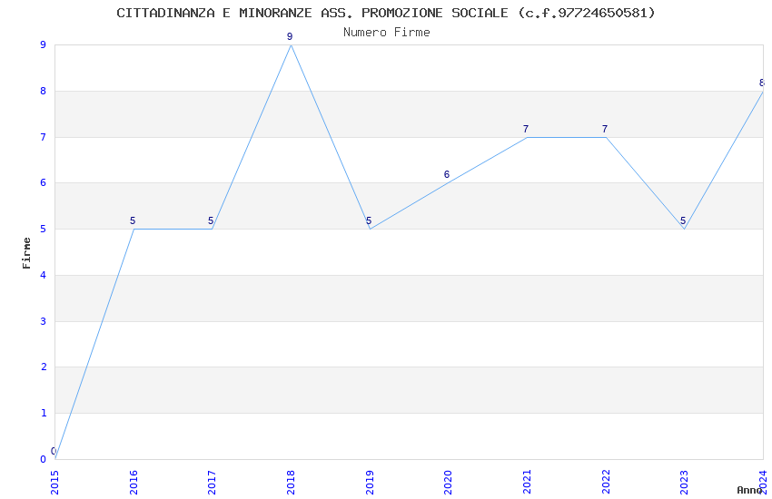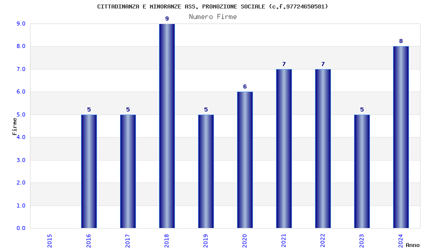 | Anno | Firme | Importi | Media | Naz. | Reg. | Prov. | Comu. |