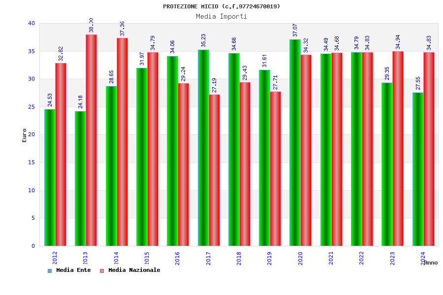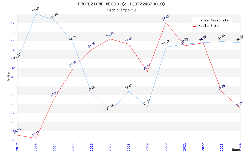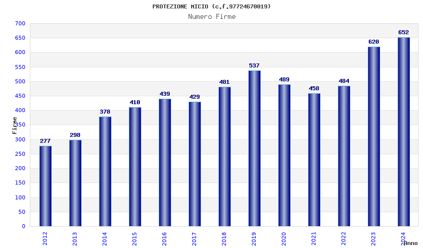 | Anno | Firme | Importi | Media | Naz. | Reg. | Prov. | Comu. |