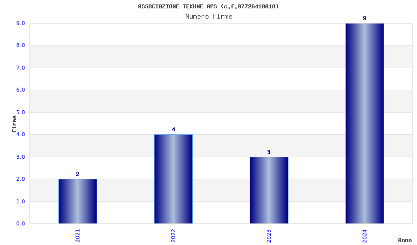 | Anno | Firme | Importi | Media | Naz. | Reg. | Prov. | Comu. |