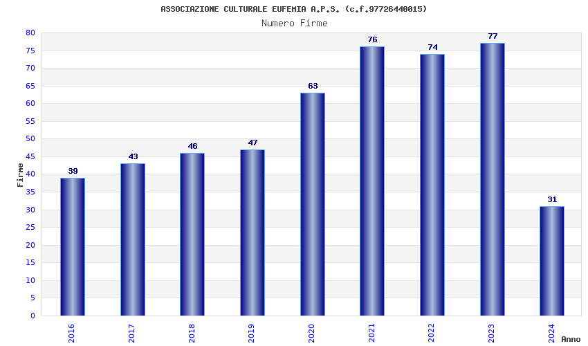 | Anno | Firme | Importi | Media | Naz. | Reg. | Prov. | Comu. |
