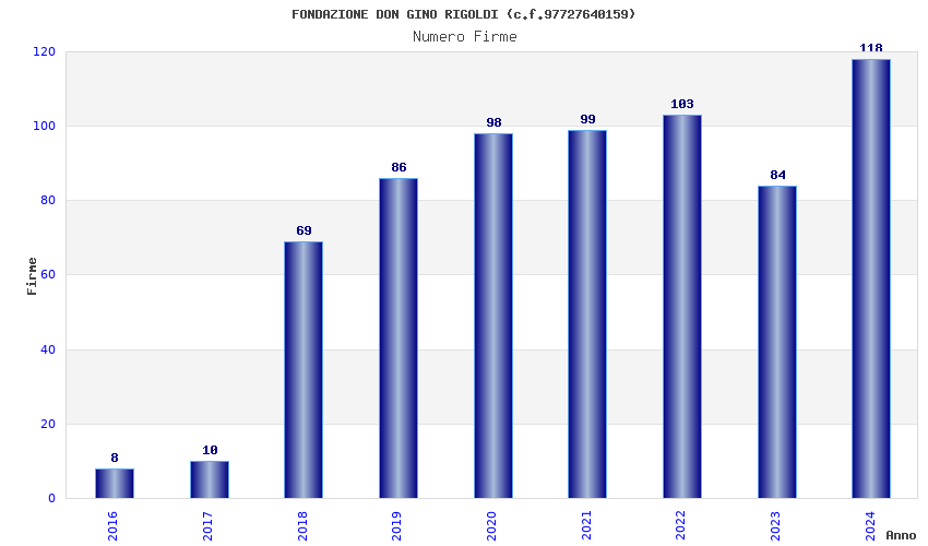 | Anno | Firme | Importi | Media | Naz. | Reg. | Prov. | Comu. |