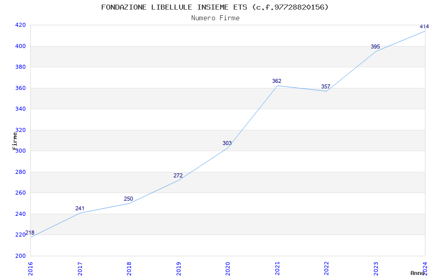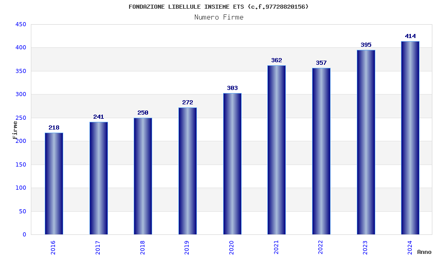 | Anno | Firme | Importi | Media | Naz. | Reg. | Prov. | Comu. |
