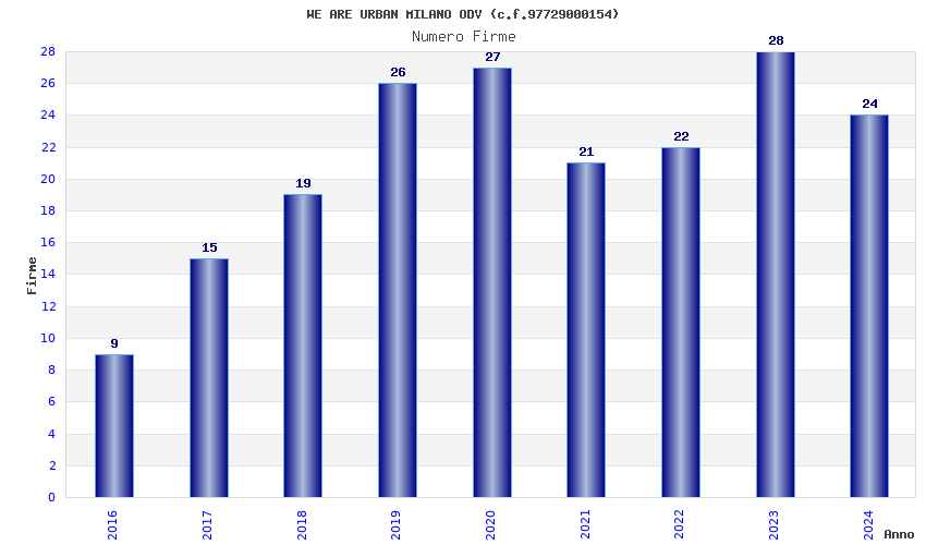 | Anno | Firme | Importi | Media | Naz. | Reg. | Prov. | Comu. |