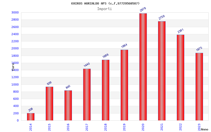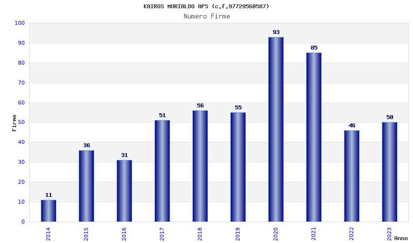 | Anno | Firme | Importi | Media | Naz. | Reg. | Prov. | Comu. |