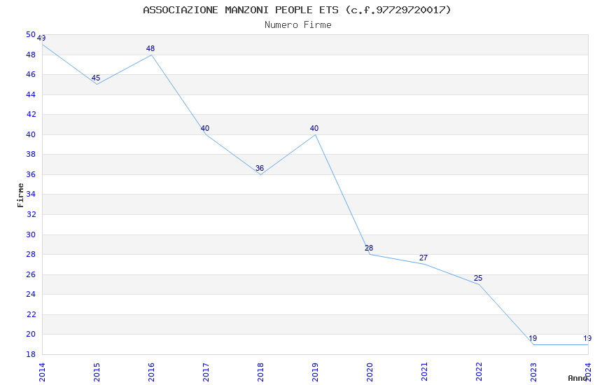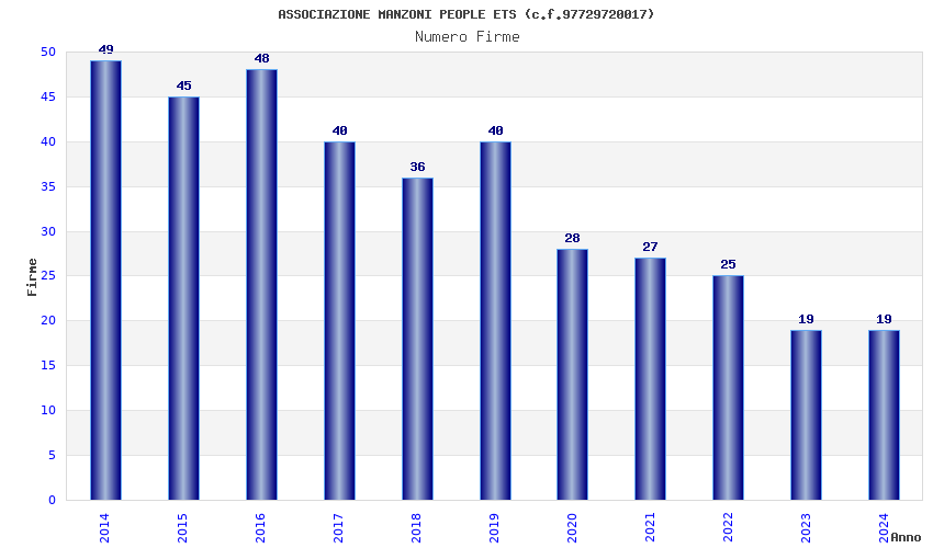 | Anno | Firme | Importi | Media | Naz. | Reg. | Prov. | Comu. |