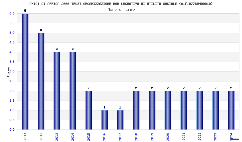 | Anno | Firme | Importi | Media | Naz. | Reg. | Prov. | Comu. |