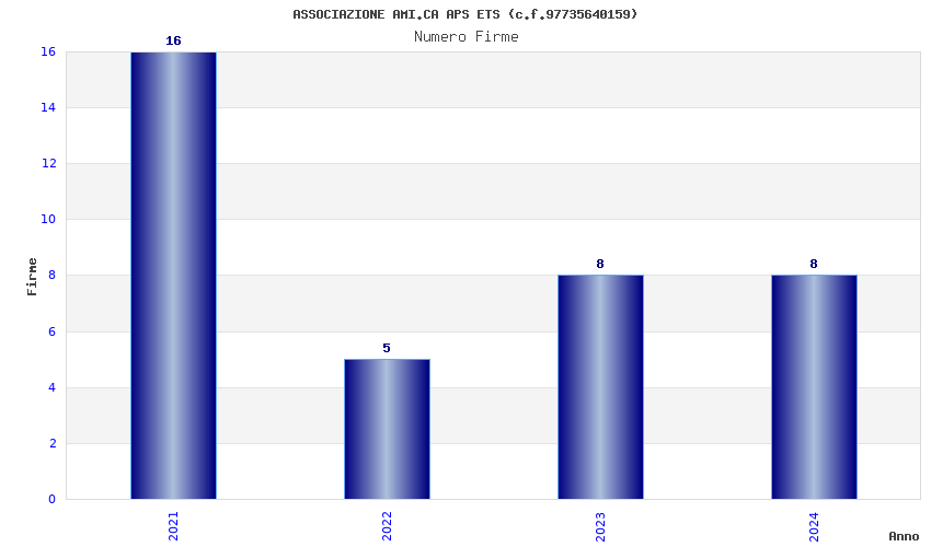 | Anno | Firme | Importi | Media | Naz. | Reg. | Prov. | Comu. |