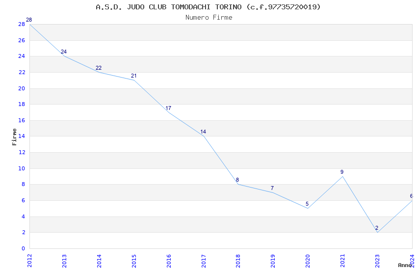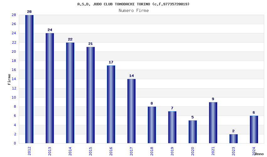 | Anno | Firme | Importi | Media | Naz. | Reg. | Prov. | Comu. |