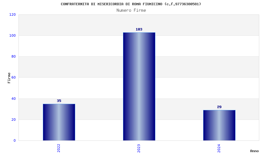 | Anno | Firme | Importi | Media | Naz. | Reg. | Prov. | Comu. |