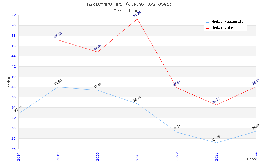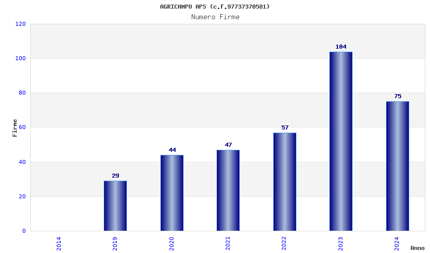 | Anno | Firme | Importi | Media | Naz. | Reg. | Prov. | Comu. |