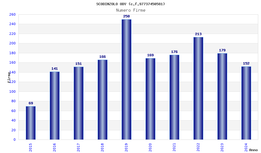 Anno Firme Importi Media Naz. Reg. Prov. Comu.