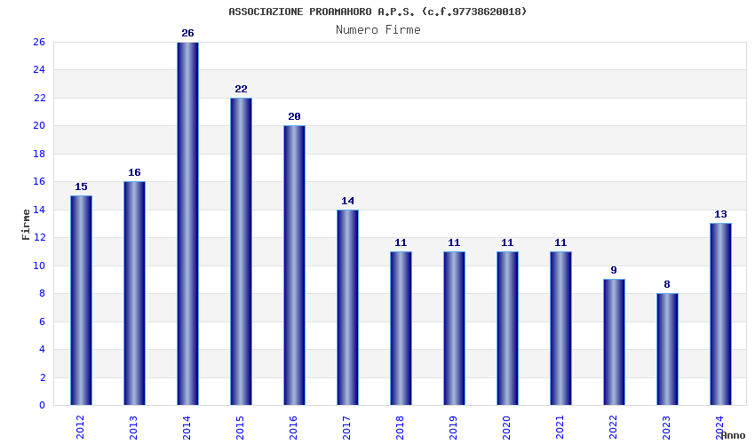 | Anno | Firme | Importi | Media | Naz. | Reg. | Prov. | Comu. |
