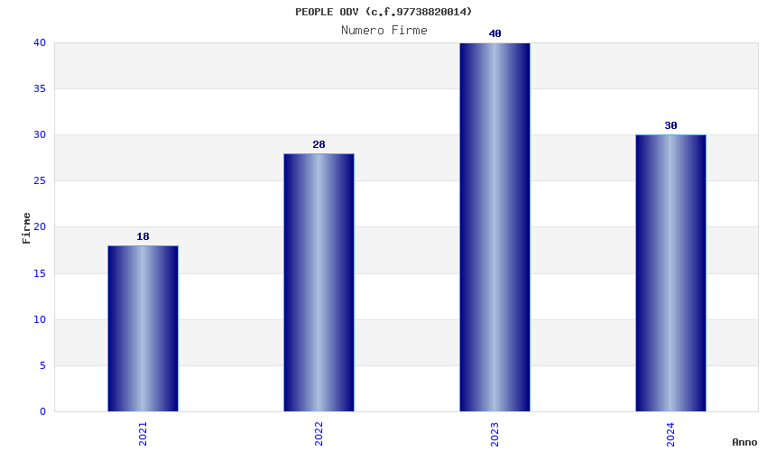 | Anno | Firme | Importi | Media | Naz. | Reg. | Prov. | Comu. |