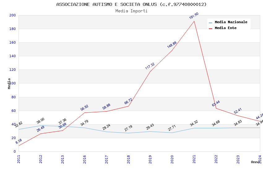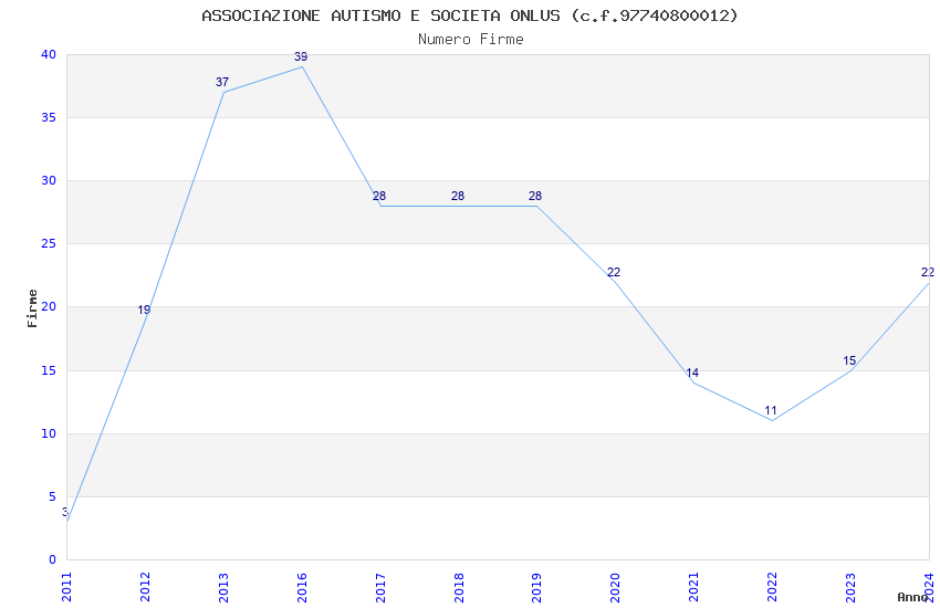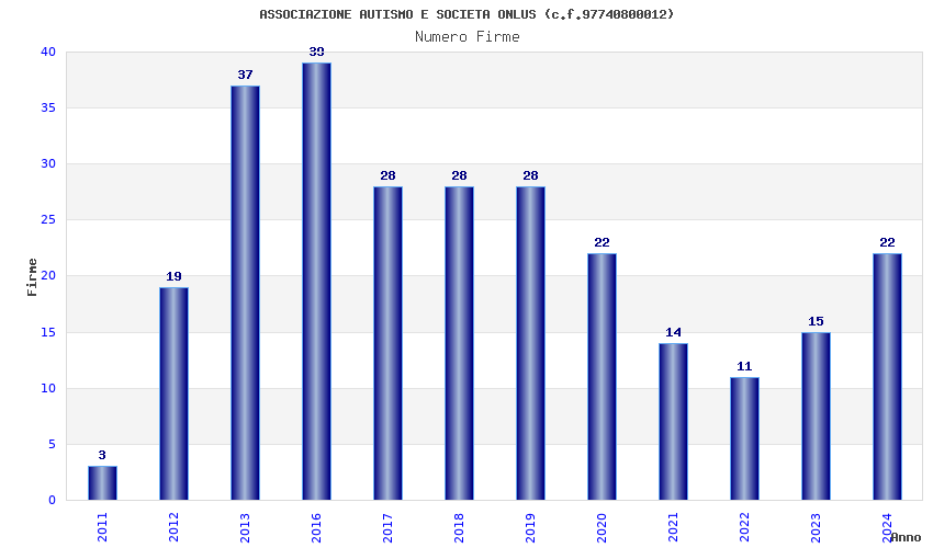 | Anno | Firme | Importi | Media | Naz. | Reg. | Prov. | Comu. |