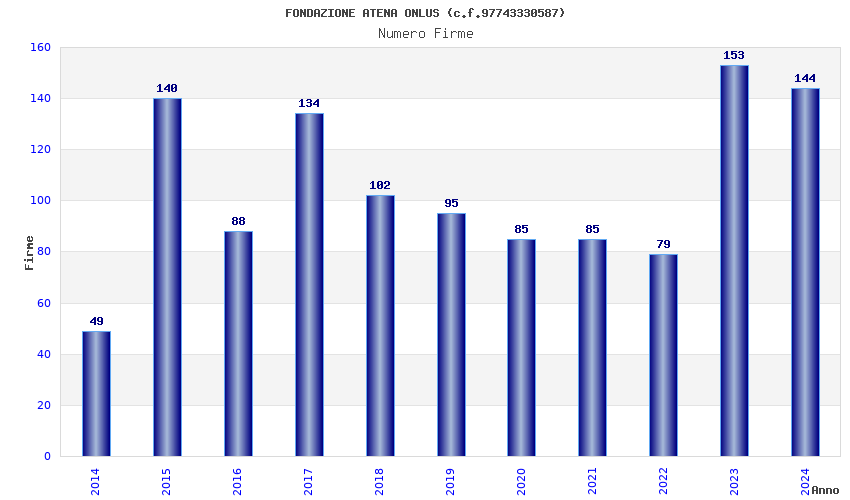 | Anno | Firme | Importi | Media | Naz. | Reg. | Prov. | Comu. |