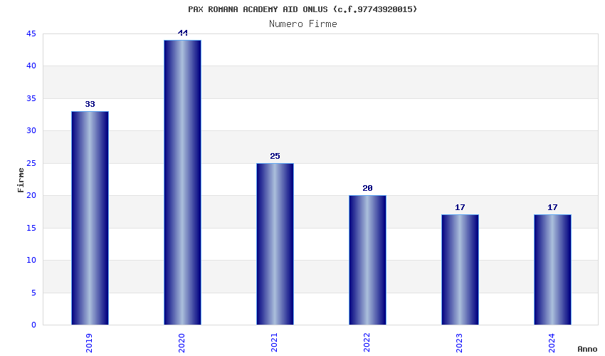 | Anno | Firme | Importi | Media | Naz. | Reg. | Prov. | Comu. |