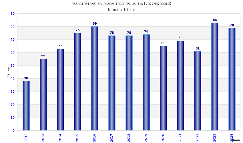 | Anno | Firme | Importi | Media | Naz. | Reg. | Prov. | Comu. |