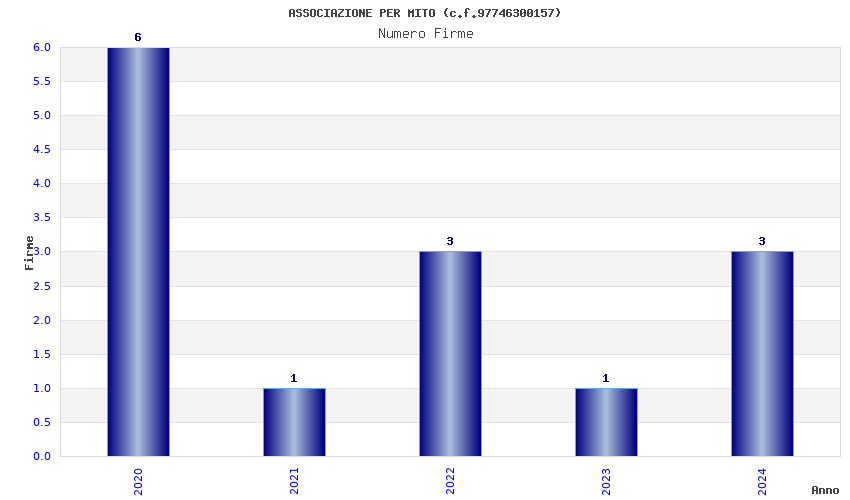 | Anno | Firme | Importi | Media | Naz. | Reg. | Prov. | Comu. |