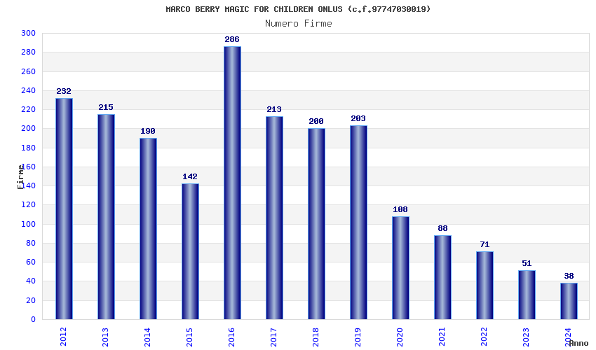 | Anno | Firme | Importi | Media | Naz. | Reg. | Prov. | Comu. |
