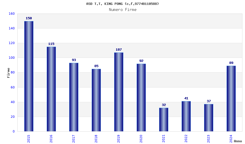 | Anno | Firme | Importi | Media | Naz. | Reg. | Prov. | Comu. |