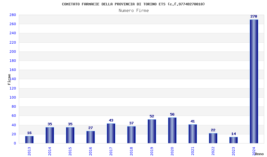 | Anno | Firme | Importi | Media | Naz. | Reg. | Prov. | Comu. |