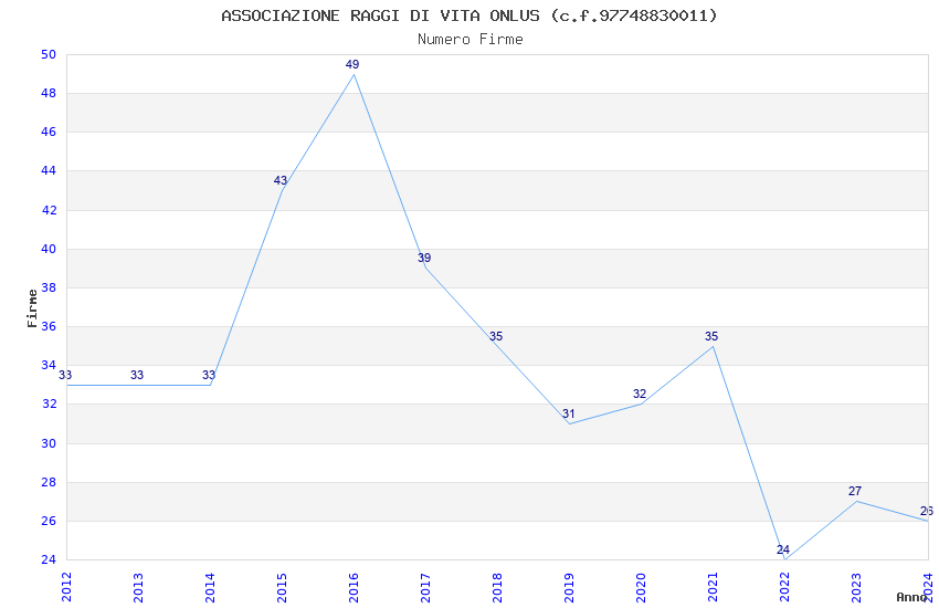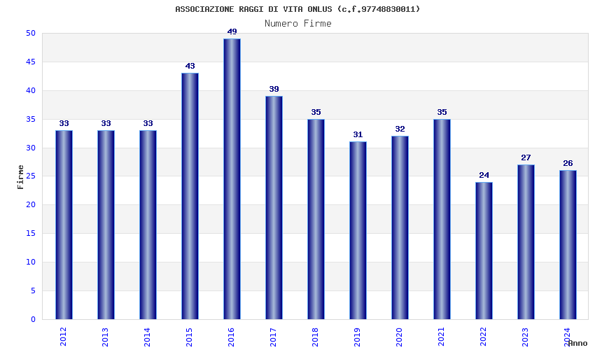 | Anno | Firme | Importi | Media | Naz. | Reg. | Prov. | Comu. |