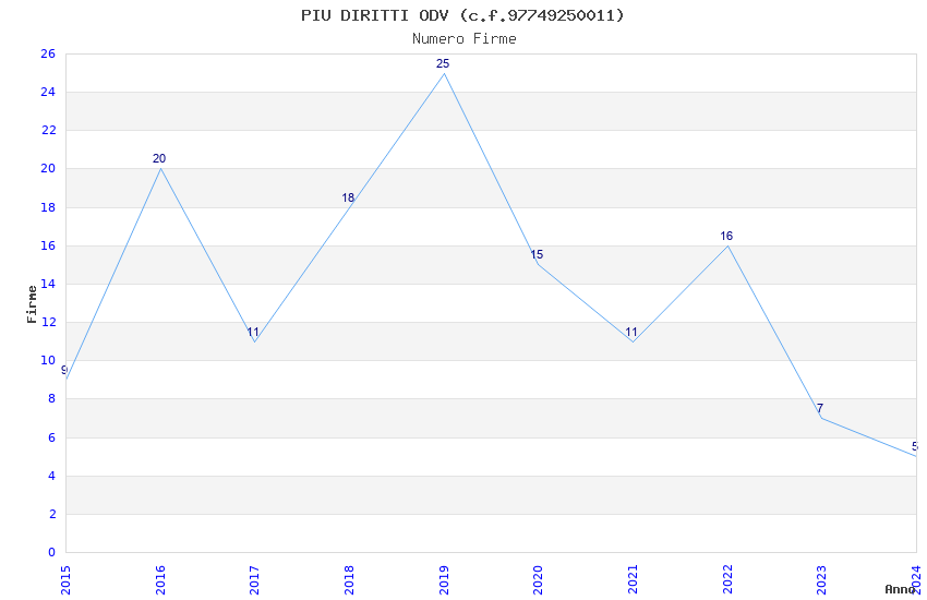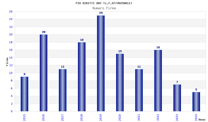 | Anno | Firme | Importi | Media | Naz. | Reg. | Prov. | Comu. |