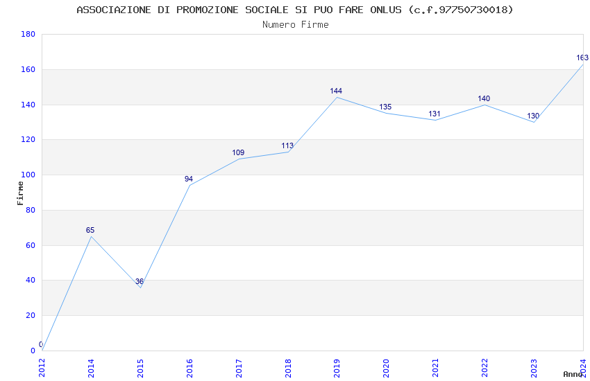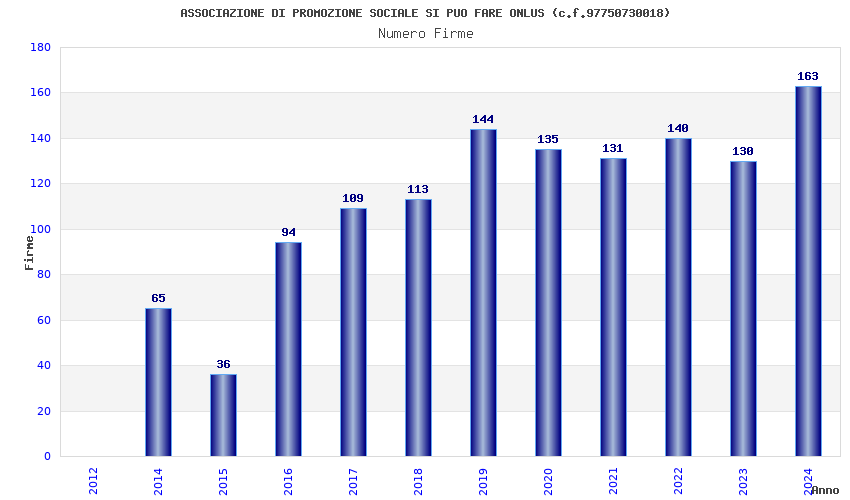 | Anno | Firme | Importi | Media | Naz. | Reg. | Prov. | Comu. |