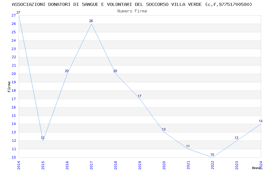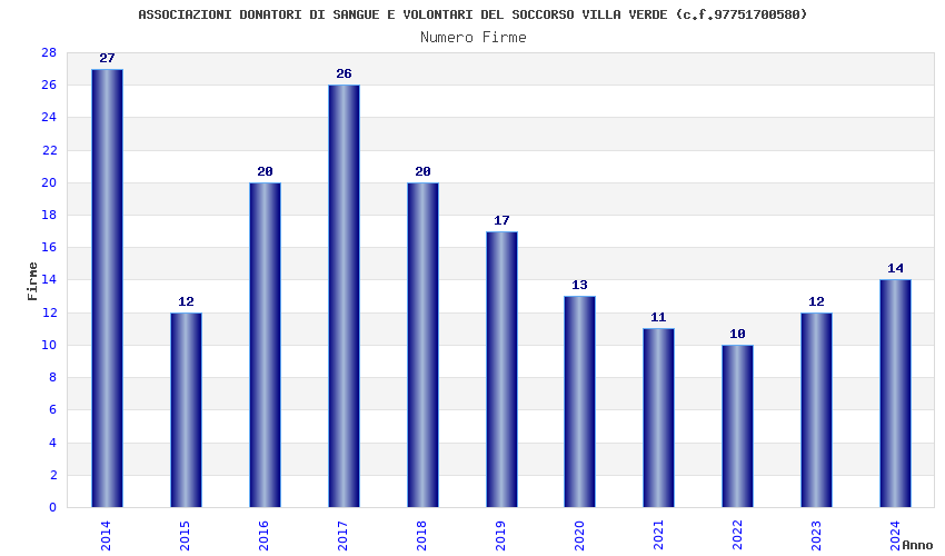 | Anno | Firme | Importi | Media | Naz. | Reg. | Prov. | Comu. |
