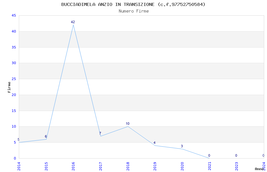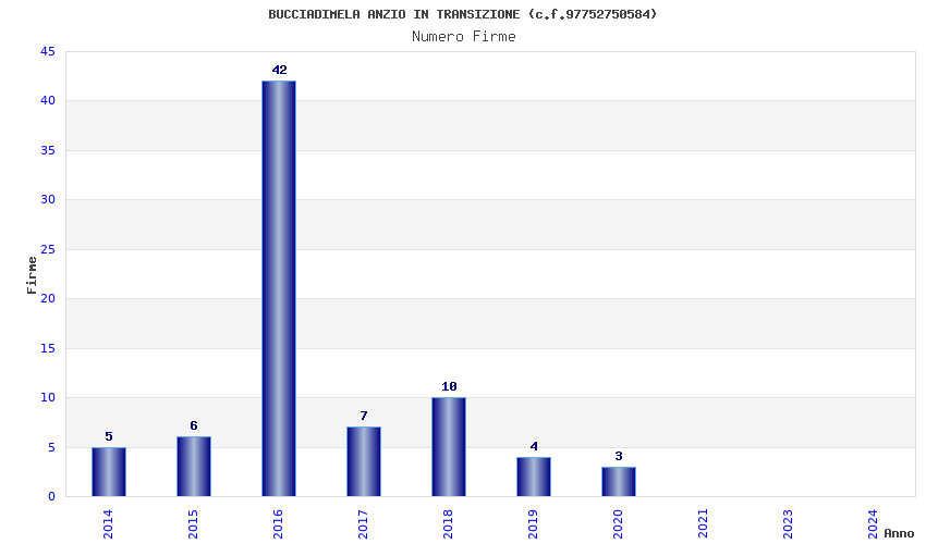 | Anno | Firme | Importi | Media | Naz. | Reg. | Prov. | Comu. |