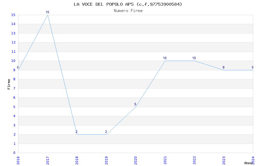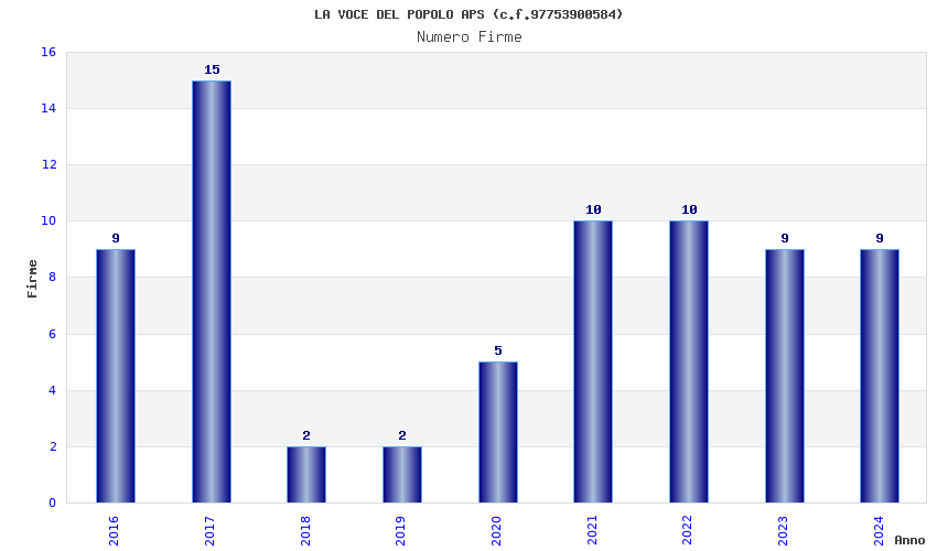 | Anno | Firme | Importi | Media | Naz. | Reg. | Prov. | Comu. |