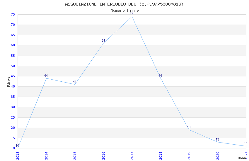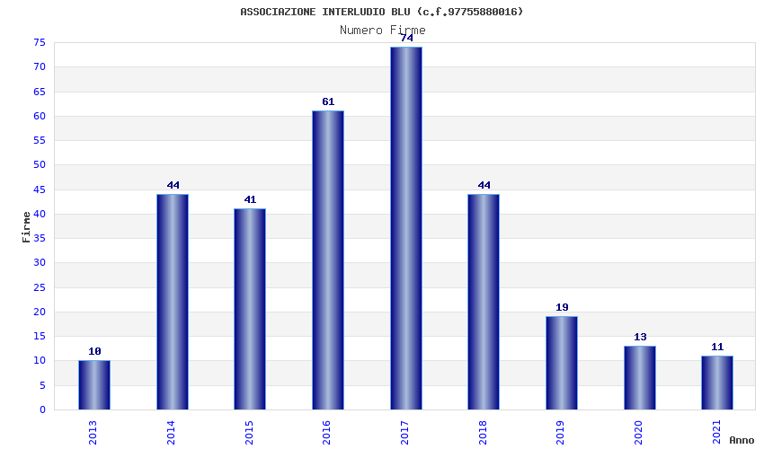 | Anno | Firme | Importi | Media | Naz. | Reg. | Prov. | Comu. |
