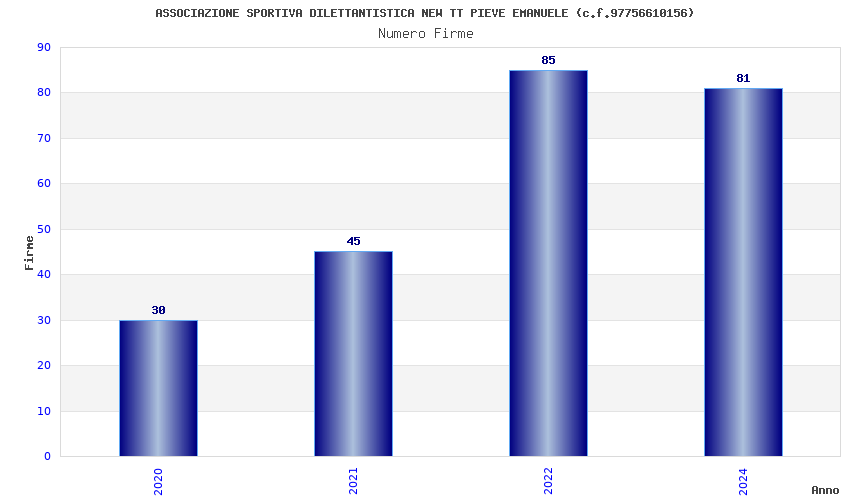 | Anno | Firme | Importi | Media | Naz. | Reg. | Prov. | Comu. |