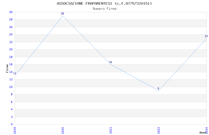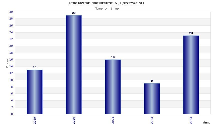 | Anno | Firme | Importi | Media | Naz. | Reg. | Prov. | Comu. |