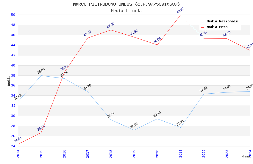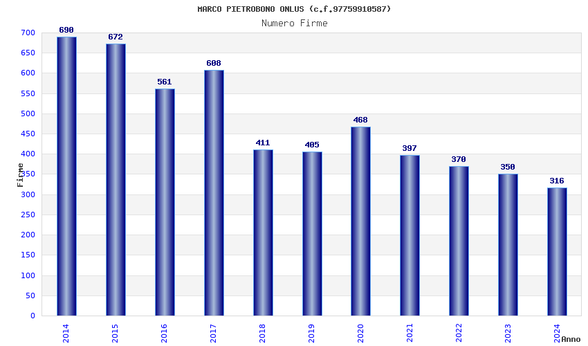 | Anno | Firme | Importi | Media | Naz. | Reg. | Prov. | Comu. |