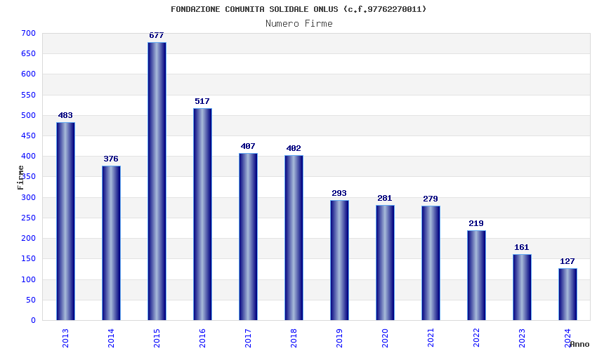 | Anno | Firme | Importi | Media | Naz. | Reg. | Prov. | Comu. |