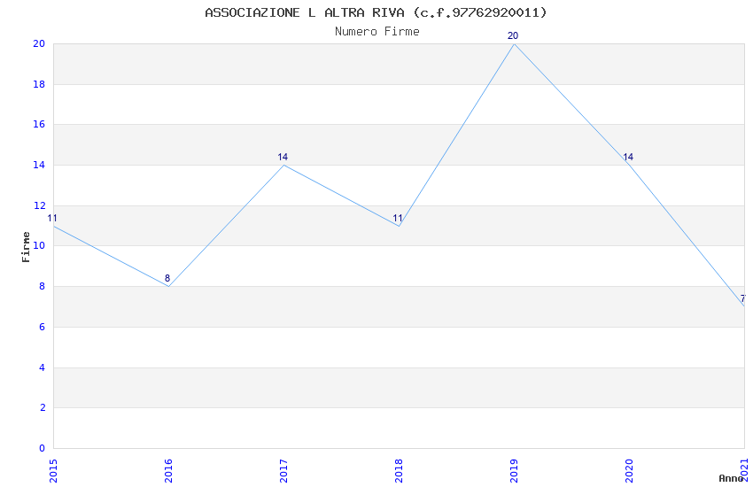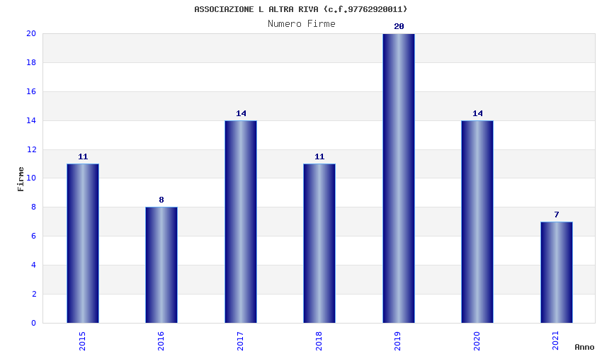 | Anno | Firme | Importi | Media | Naz. | Reg. | Prov. | Comu. |