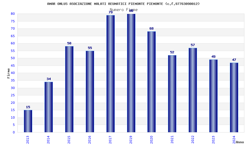 | Anno | Firme | Importi | Media | Naz. | Reg. | Prov. | Comu. |