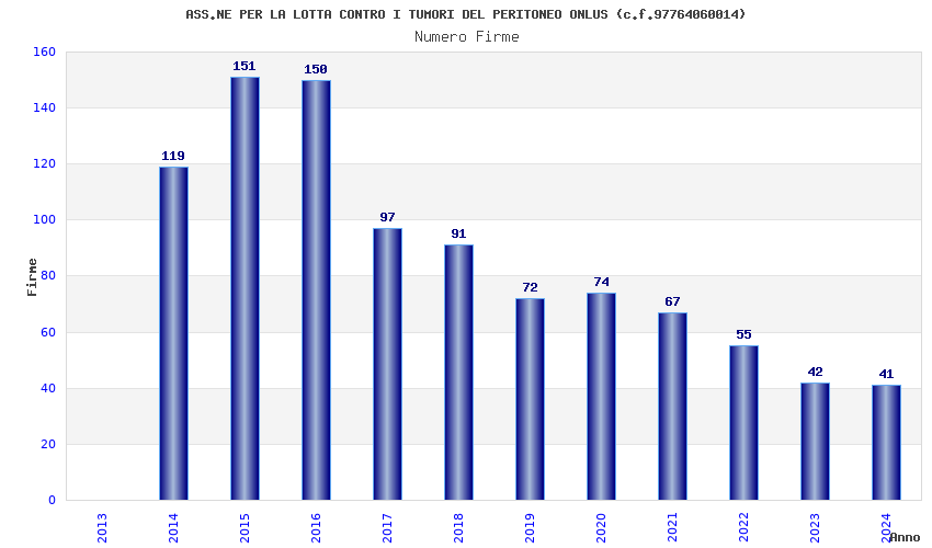 | Anno | Firme | Importi | Media | Naz. | Reg. | Prov. | Comu. |