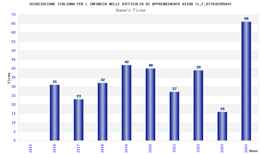 | Anno | Firme | Importi | Media | Naz. | Reg. | Prov. | Comu. |