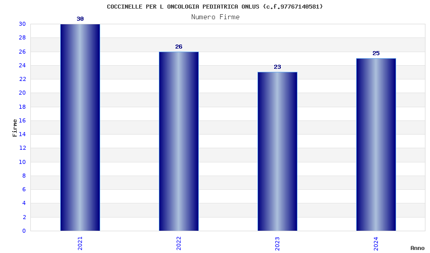 | Anno | Firme | Importi | Media | Naz. | Reg. | Prov. | Comu. |