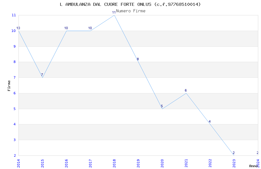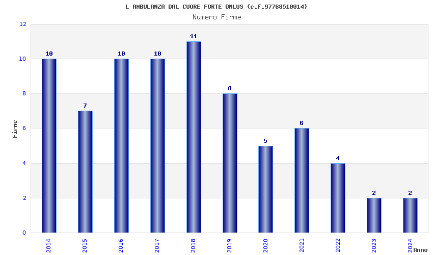 | Anno | Firme | Importi | Media | Naz. | Reg. | Prov. | Comu. |