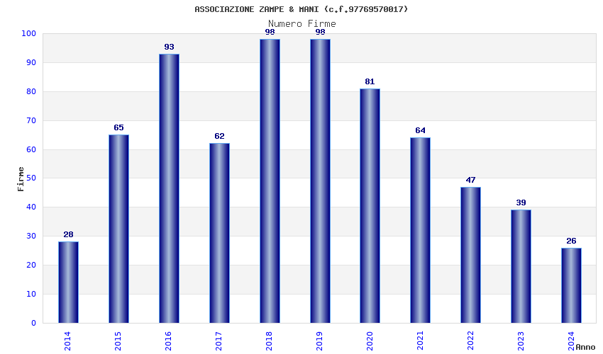 | Anno | Firme | Importi | Media | Naz. | Reg. | Prov. | Comu. |