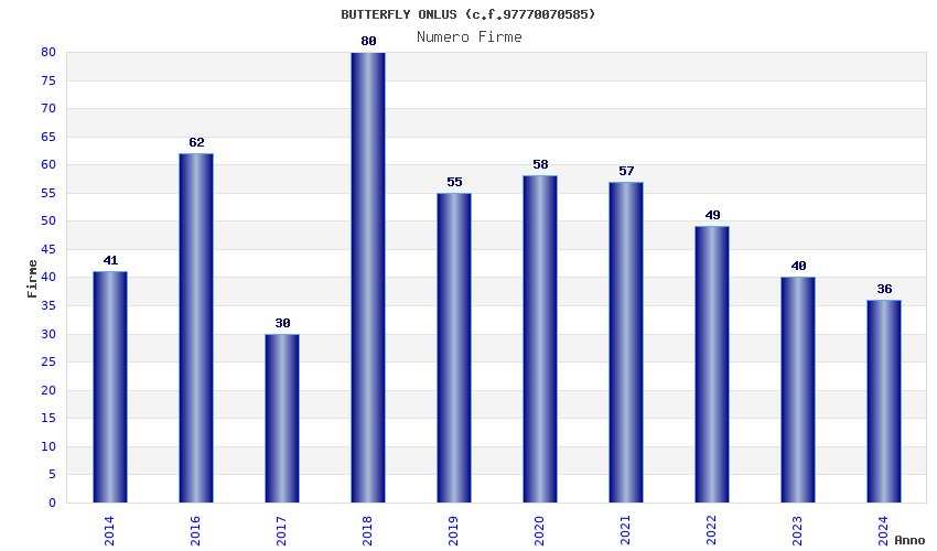 | Anno | Firme | Importi | Media | Naz. | Reg. | Prov. | Comu. |