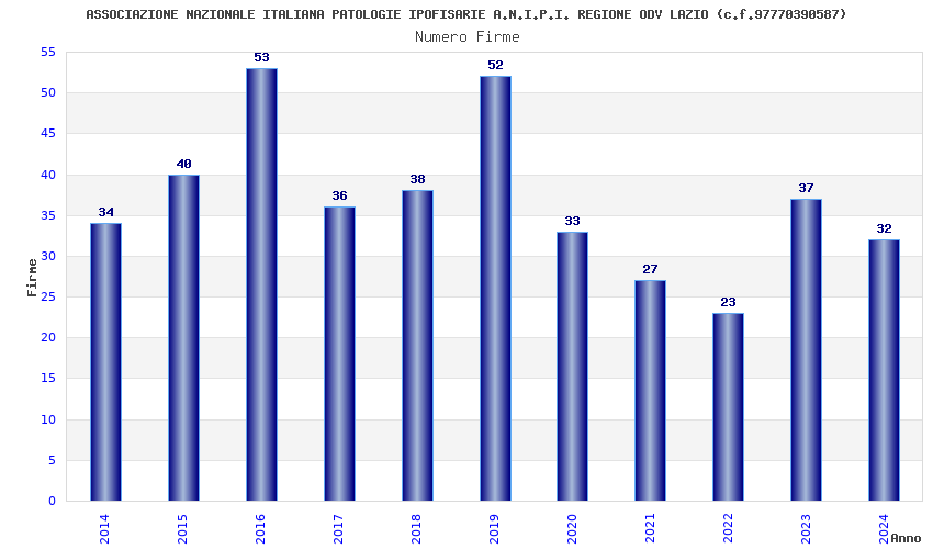 | Anno | Firme | Importi | Media | Naz. | Reg. | Prov. | Comu. |