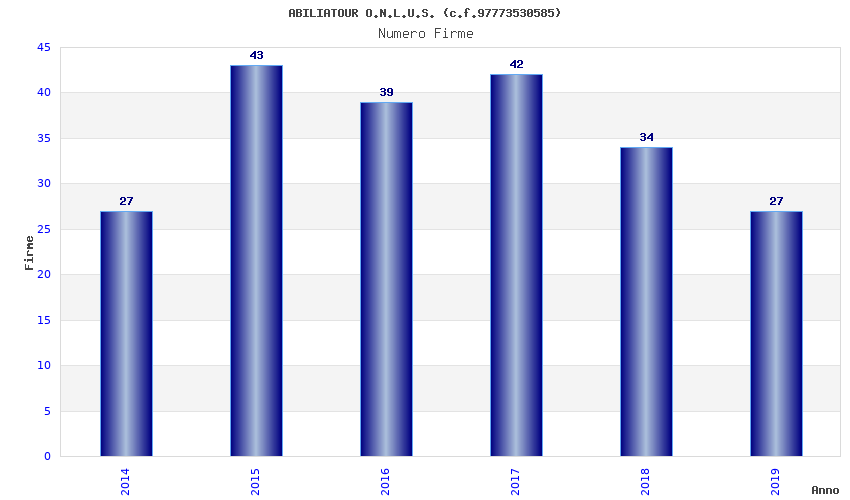 | Anno | Firme | Importi | Media | Naz. | Reg. | Prov. | Comu. |