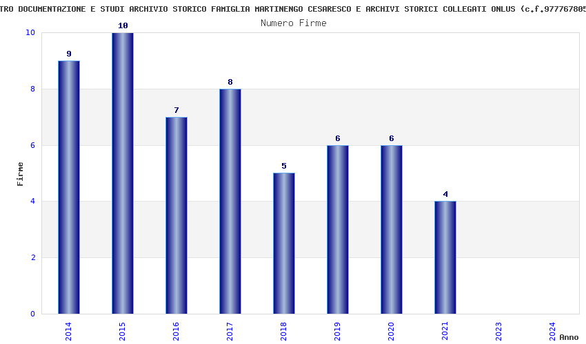| Anno | Firme | Importi | Media | Naz. | Reg. | Prov. | Comu. |